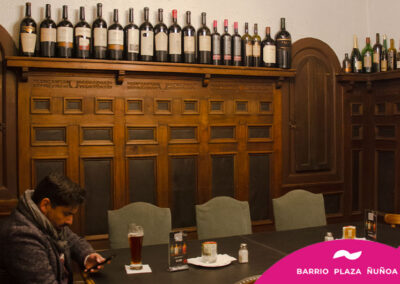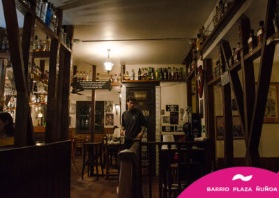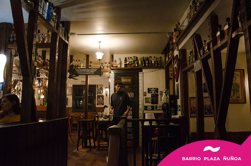 El ambiente del bar es acogedor, con una decoración que conserva elementos de una casona antigua, como pisos de madera y lámparas clásicas. También cuenta con una terraza exterior.